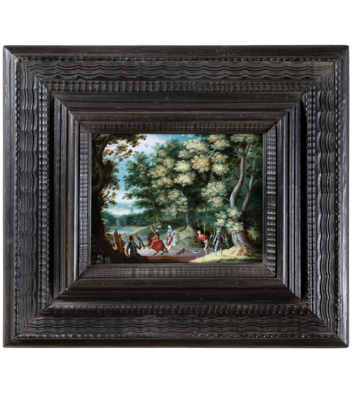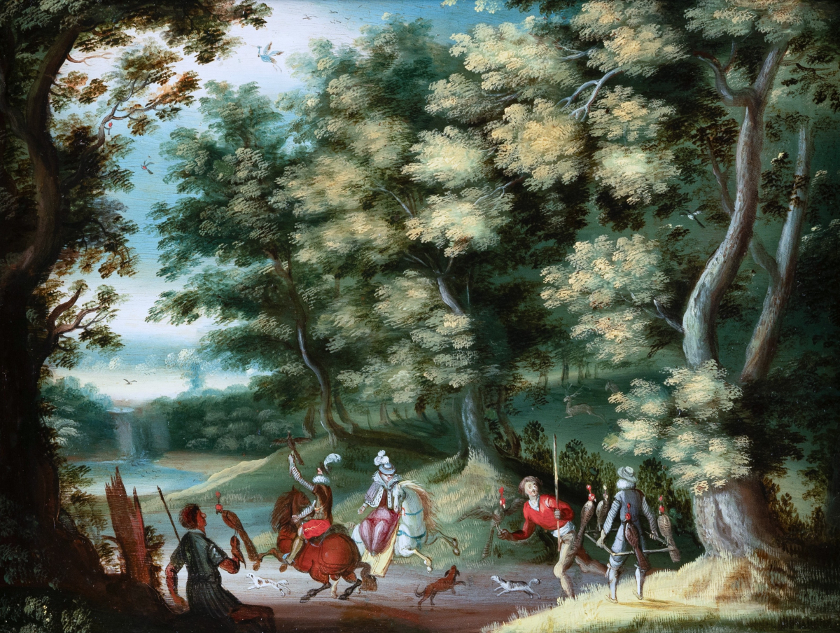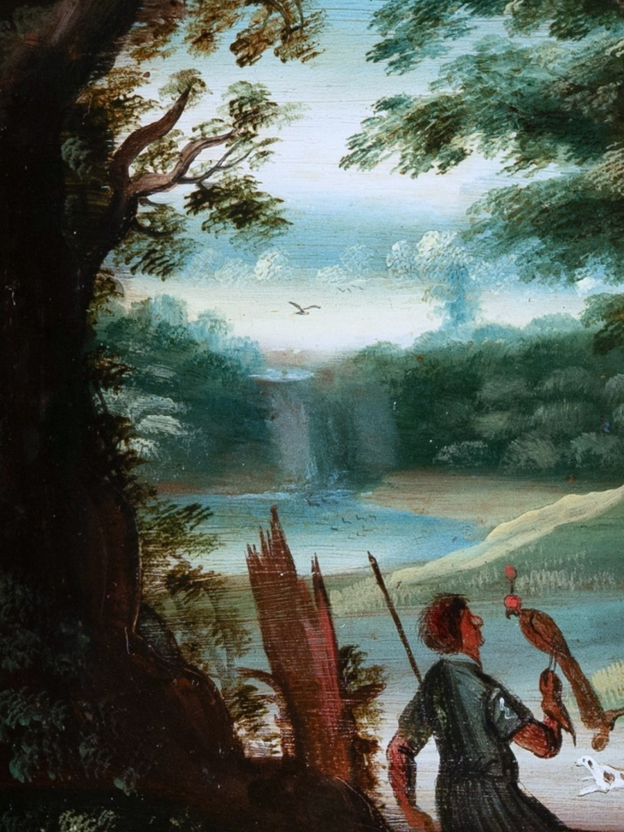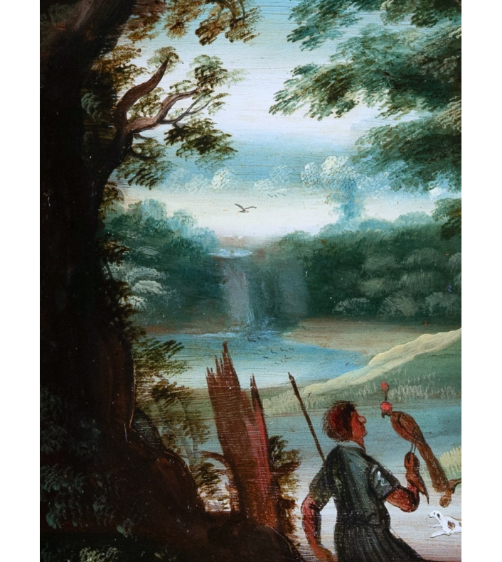 • Anton Mirou, Landscape with hunters, oil on copper, h. 25.5 cm, w. 33 cm, Historical Museum of the Palatinate, Spire, Germany