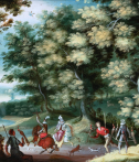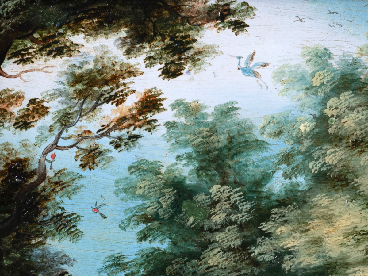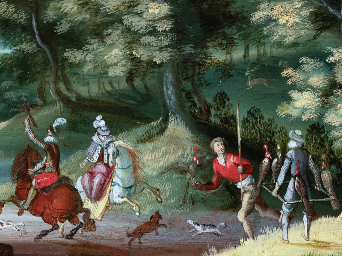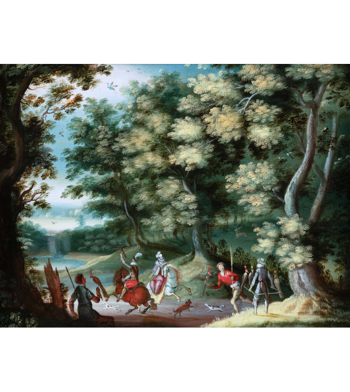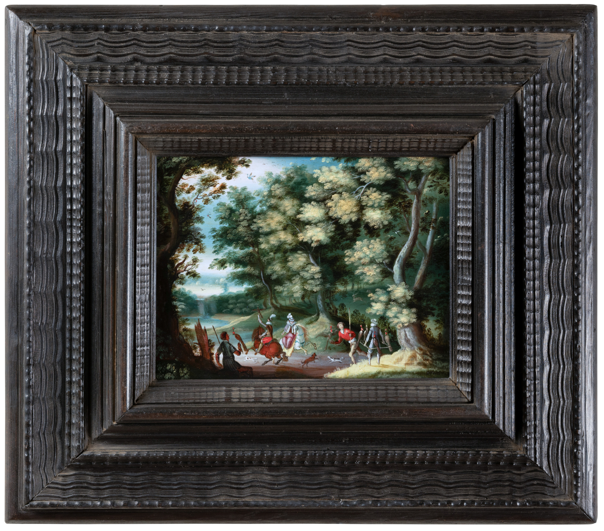 • Anton Mirou, Landscape with hunters, oil on copper, h. 25.5 cm, w. 33 cm, Historical Museum of the Palatinate, Spire, Germany