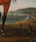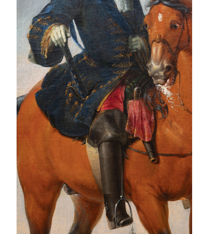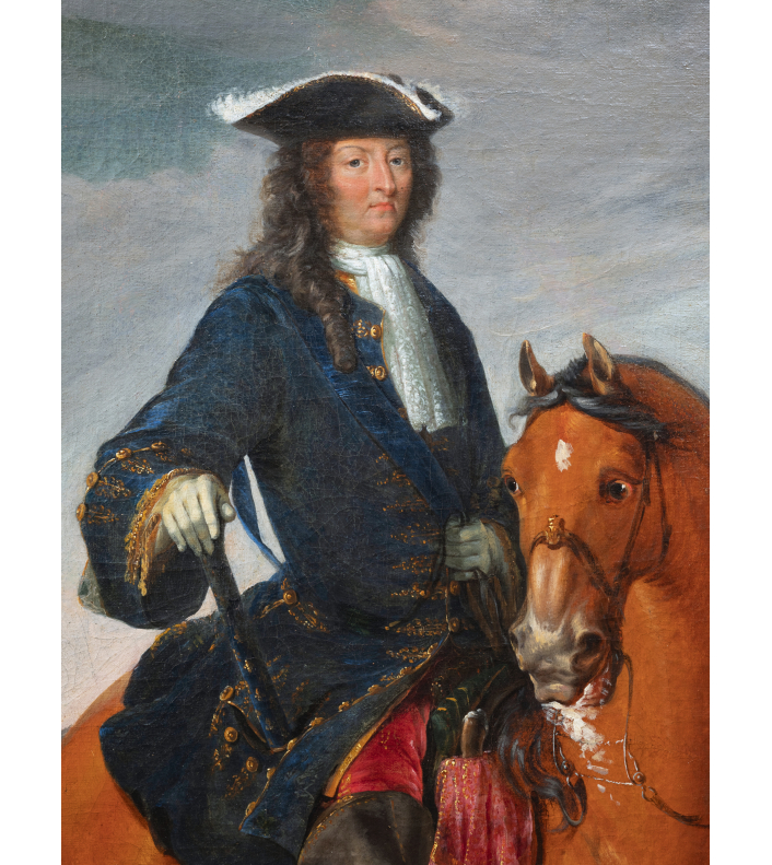By depicting the monarch on horseback during one of the military campaigns, our portrait is part of a long series of works initiated by Adam Frans van der Meulen and continued by Jean Baptiste Martin to exalt the military exploits of Louis XIV and his army.