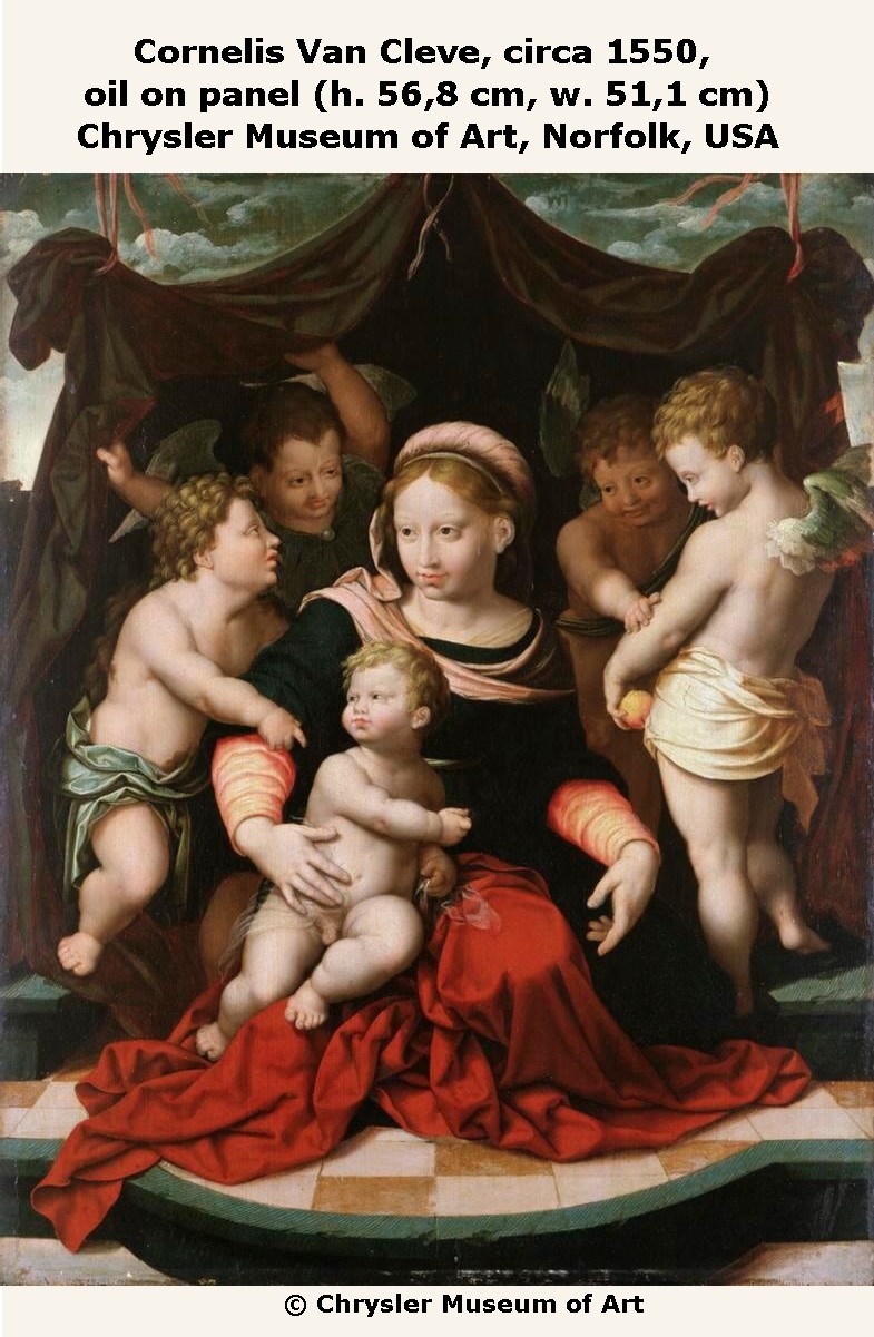 Although there is no known version painted by Joos Van Cleve of this subject, his son Cornelis Van Cleve has repeatedly painted the replica of del Sarto's lost work (Dorotheum Auction, Vienna, 17/10/2017, and Chrysler Museum of Art, USA).