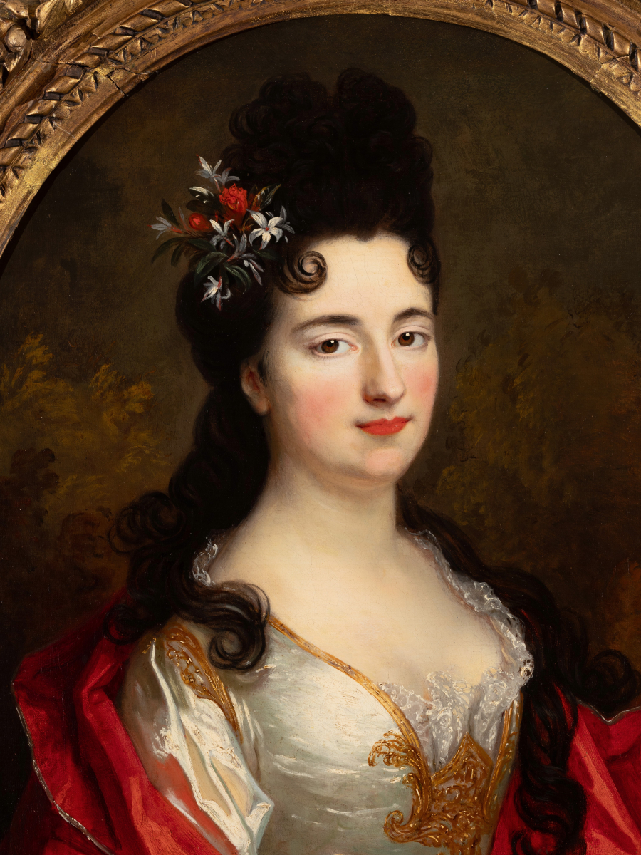 Placed in the middle of the warm foliage of an autumnal landscape, the young woman immortalized by one of the best portrait painters of the 18th century takes us into very high French society during the reign of Louis XIV.