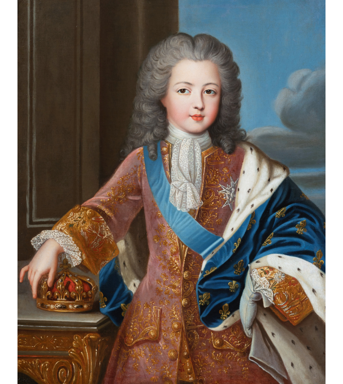 • Full-length portrait of Louis XV by Pierre Gobert, oil on canvas, 144 cm x 110.5 cm, Fundación Yannick i Ben Jakober, Majorca, Spain Sa Bassa Blanca Museum