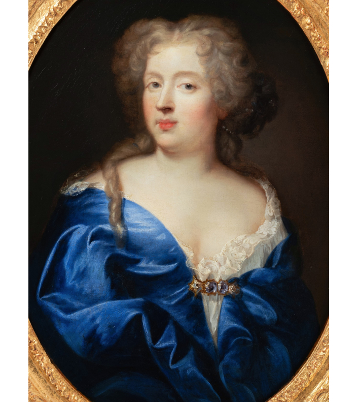 Despite the fact that François de Troy began working for the king and the marquise through Charles Le Brun in the early 1670s, no portrait of the Marquise de Montespan painted by him survives in either public or private collections. However, the king's building accounts for 1673 record a payment to François de Troy for a portrait of the marquise commissioned for her apartment at the Château de Saint-Germain. A 17th-century copy of our painting exists in the Palace of Versailles (inv. MV4265, anonymous painter, h. 69 cm, w. 57 cm); of poor quality, it was painted with less expensive blue pigments that have turned gray with age.
