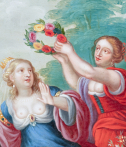 Peter Sion interprets the subject as most Nordic artists of the 17th century did, emphasizing beautiful women sumptuously dressed (and undressed!) and the green landscape.