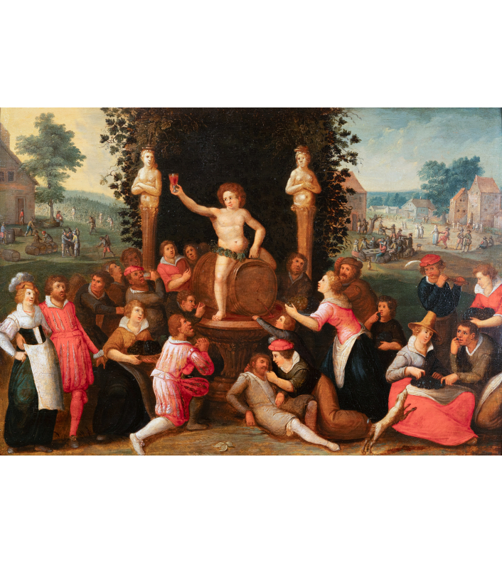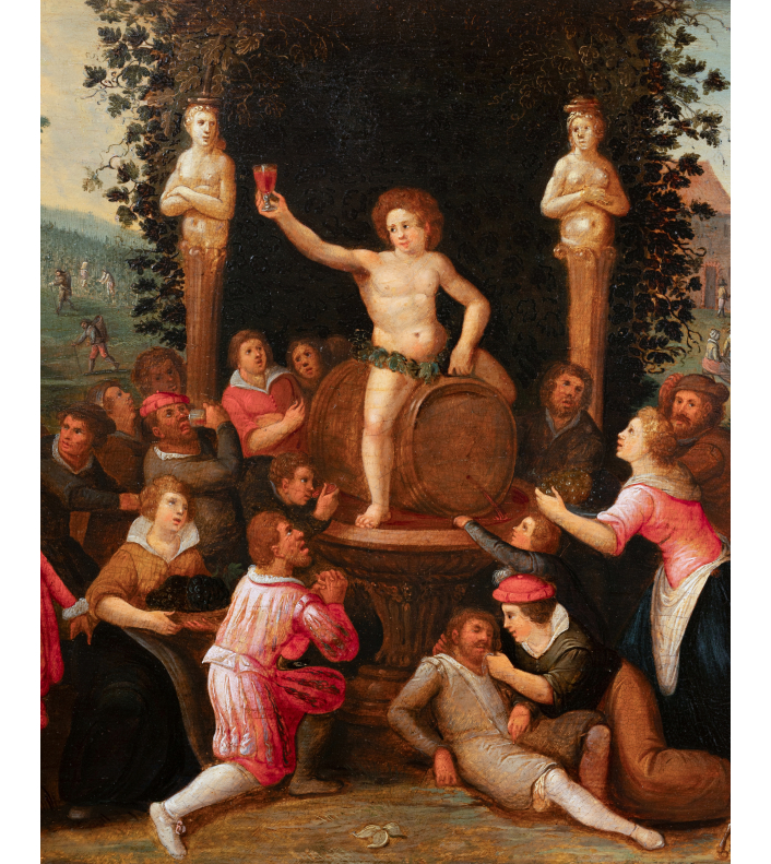 - Louis de Caullery, Hommage à Bacchus, huile sur panneau h. 42 cm, l. 61 cm, vente publique 18/06/1980 Palais des Beaux Arts à Bruxelles, lot n 506