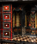 Pour magnifier la préciosité du théâtre le sol est réalisé en damier de carrés d'ivoire et d'écailles de tortue.