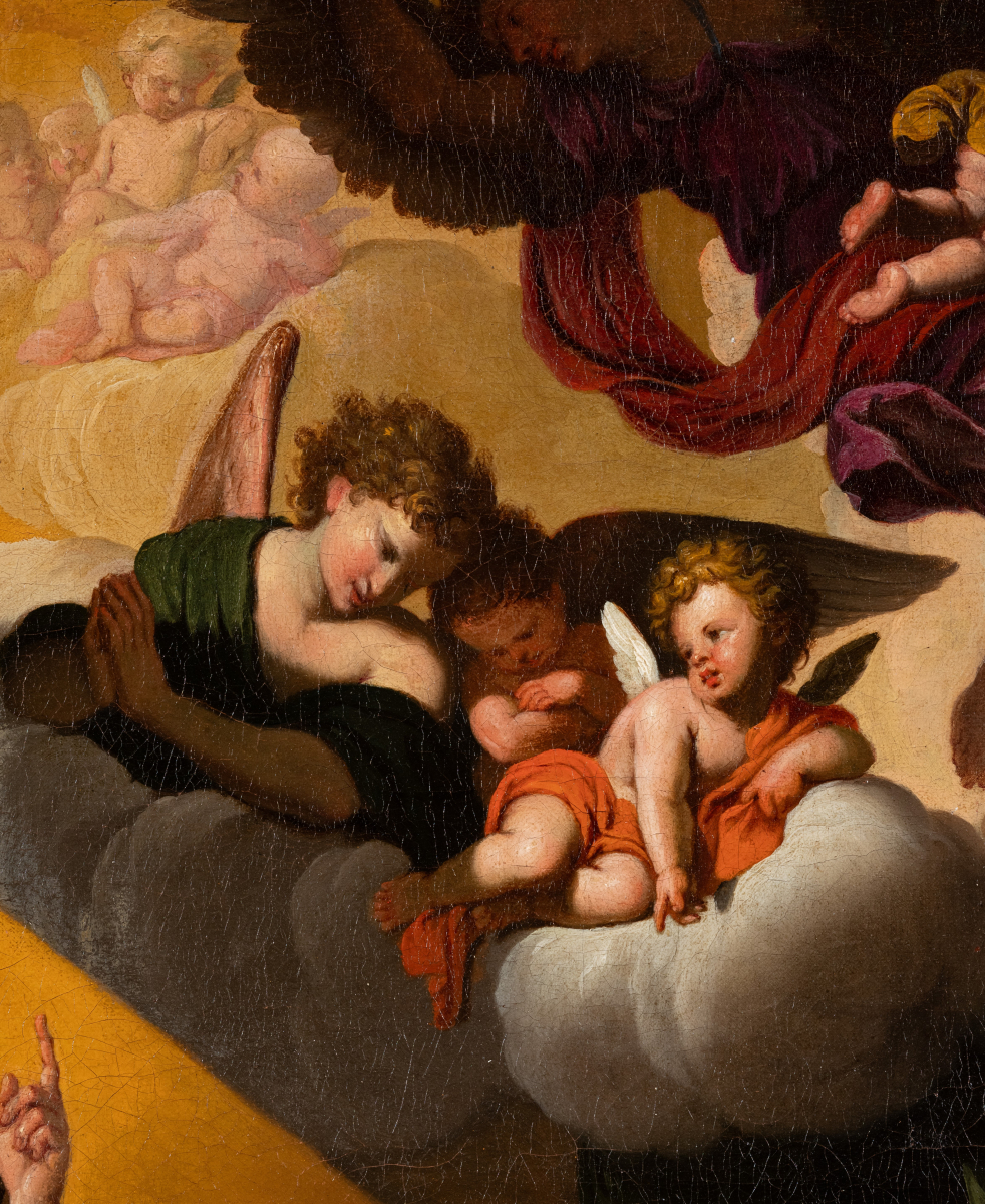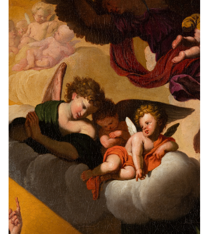 Cette domination divine est mise en avant par le peintre grâce aux nombreuses figures aux étoffes flottantes.