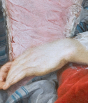 Positionné au premier plan ce geste discret plein de tendresse et de douceur est employé par le peintre pour instaurer un lien affectif entre la mère et son fils, malgré une apparente retenue de la mère dont le regard est dirigé vers le spectateur.