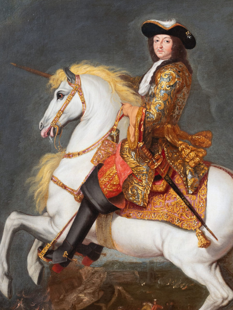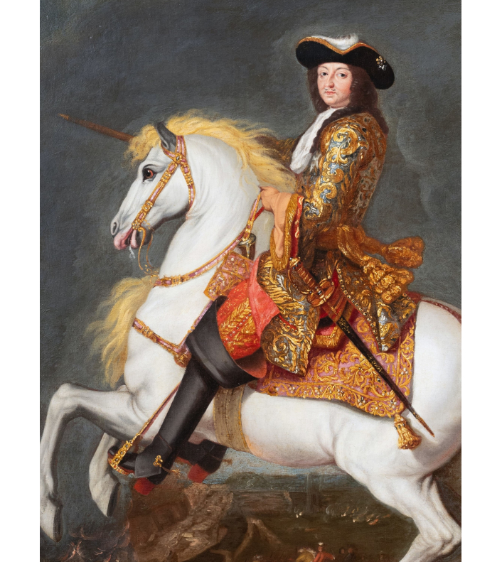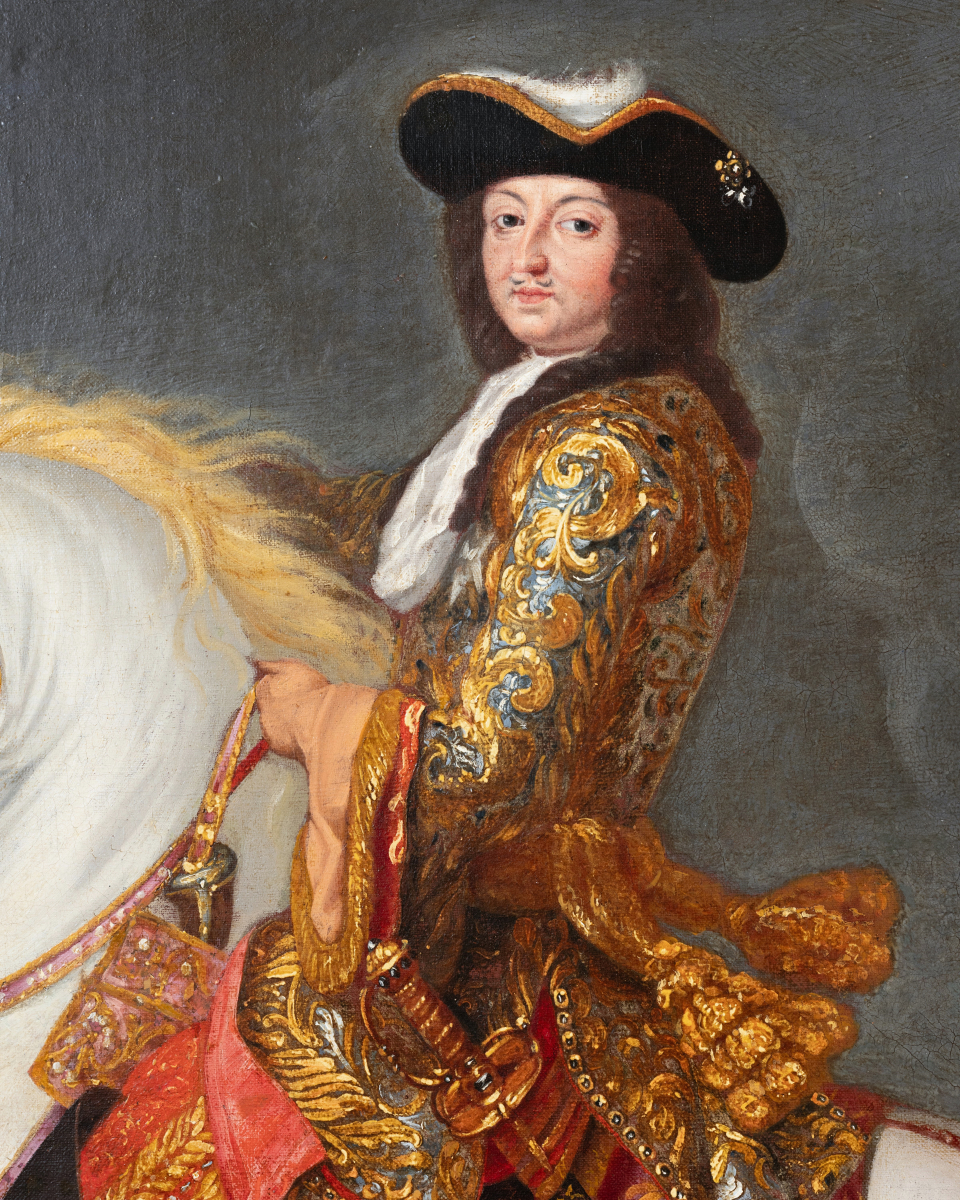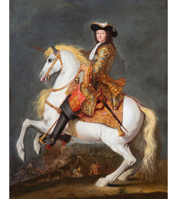 Ce portrait équestre était une des plus belles effigies du souverain et son succès entraîna l'exécution de plusieurs exemplaires entre 1680 et 1690.