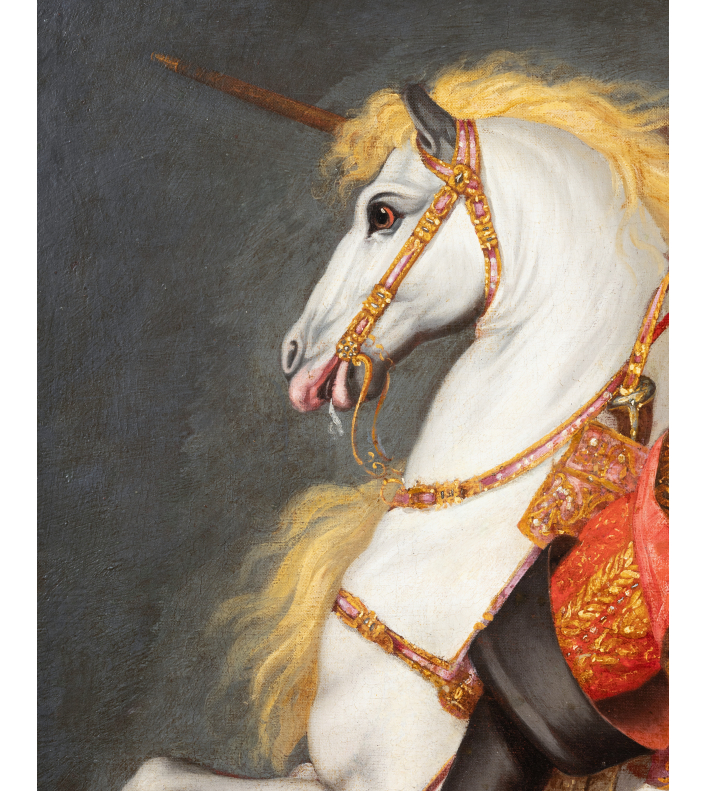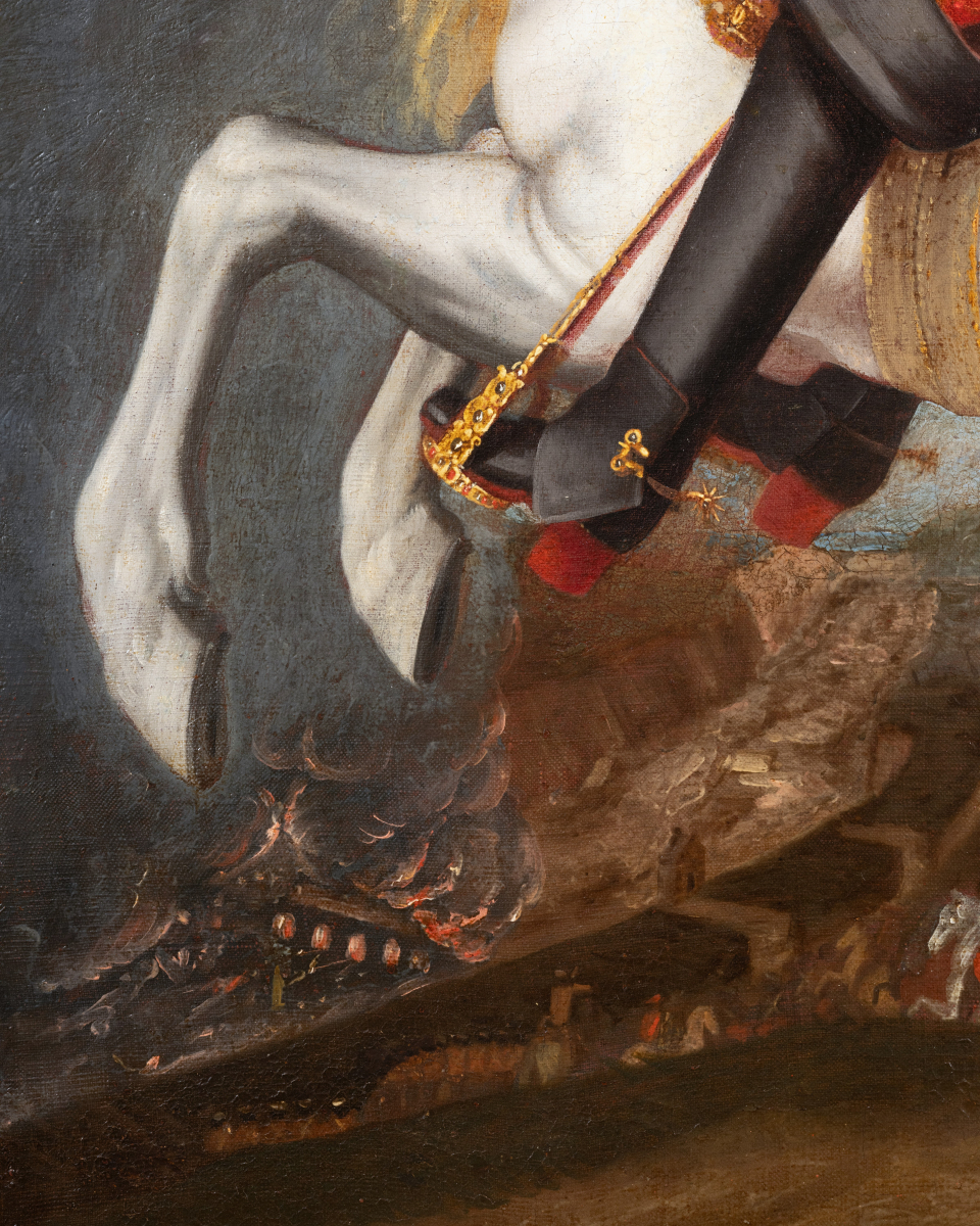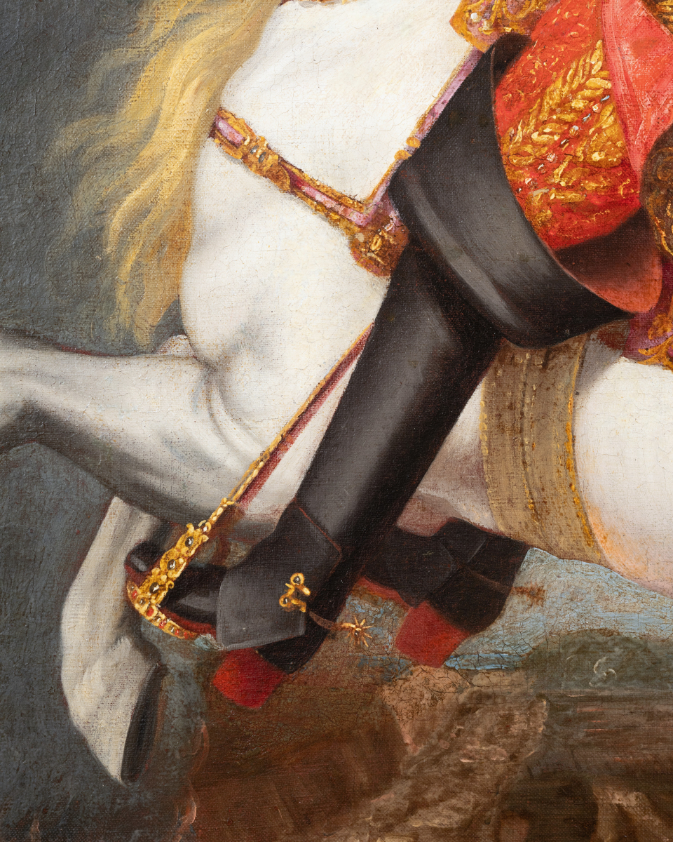 Ce portrait équestre était une des plus belles effigies du souverain et son succès entraîna l'exécution de plusieurs exemplaires entre 1680 et 1690.