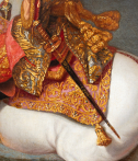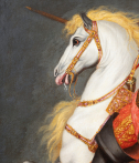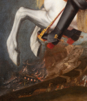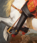 Le cheval est là pour rehausser le pouvoir et la grandeur de celui qui le monte, représenté en roi conquérant, lequel est d'ailleurs peint à une échelle légèrement supérieure à celle du cheval afin de souligner sa majesté.